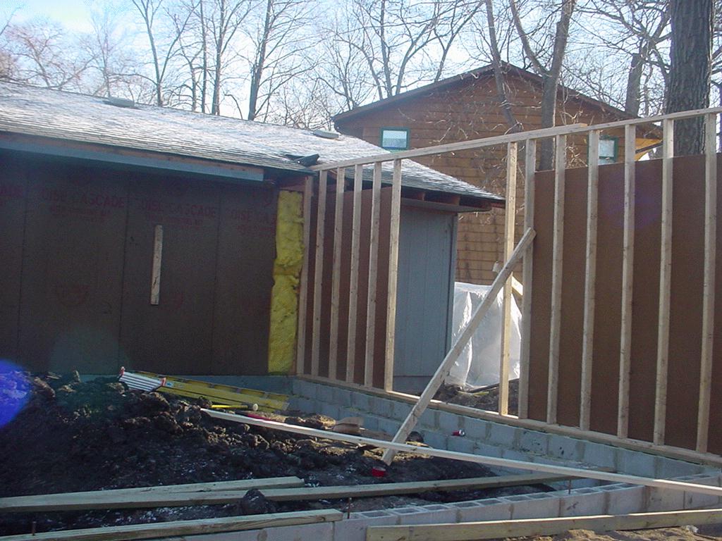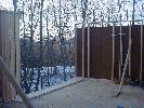 They have started to put up the walls. As you can see, Rob's workshop will not be quite as wide as the garage. This