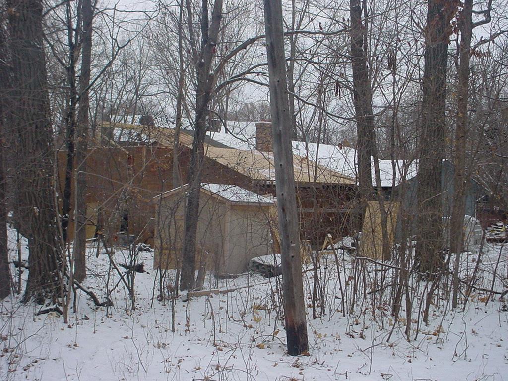 Here is a view showing Rob's new workshop in the foreground and my new office in the background. 1/30/03 |