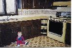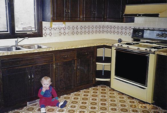 This is the same kitchen! What a difference! Rob sanded & painted the cabinets, we had the wall tile & counter