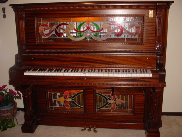For our 13th anniversary, Rob surprised me with this beautiful player piano. It is a 1919 Wing & Sons piano that has