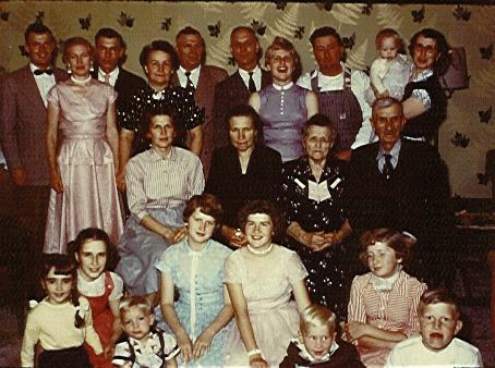 Krause Family Picture ~1954 Top Row L-R: Bob & Verda, ??, Margaret, Carl, ??, Mary Lou, Ray Abner, ??, Clarice, 2nd