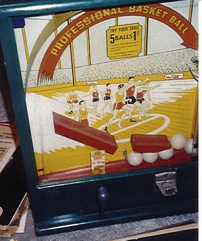 1950 Victor Vendor Victory professional basketball. Nice conditon missing back door. Also very clean Kicker catcher JF